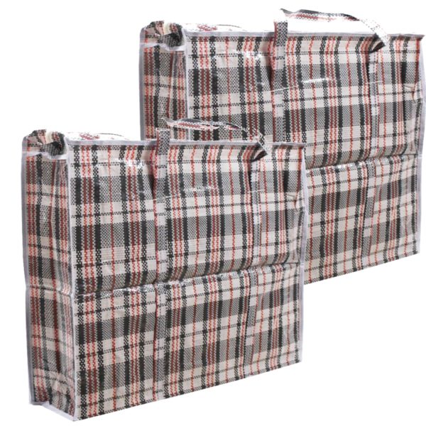 Multipak van 2x stuks mega/jumbo/XXL boodschappentas/shopper zwart geruit 55 x 30 cm van kunststof