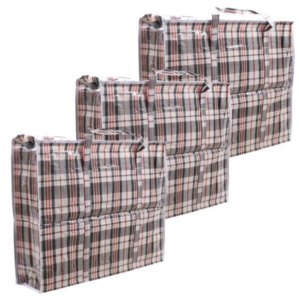 Multipak van 3x stuks mega/jumbo/XXL boodschappentas/shopper zwart geruit 55 x 30 cm van kunststof