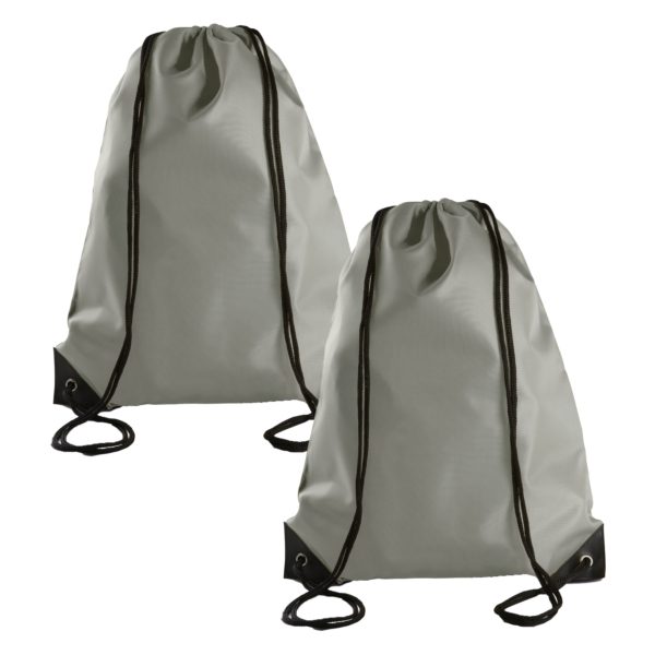 Sport gymtas/draagtas met rijgkoord – 2x – lichtgrijs – 34 x 44 cm – polyester – verstevigde hoeken