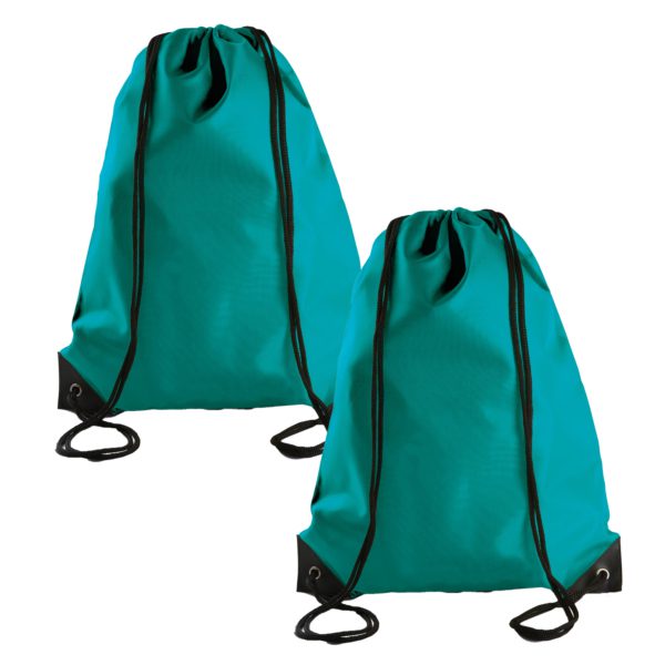 Sport gymtas/draagtas met rijgkoord – 2x – smaragd groen – 34 x 44 cm – polyester – verstevigde hoek