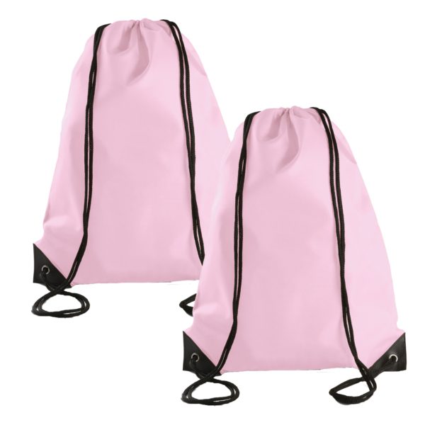 Sport gymtas/draagtas met rijgkoord – 2x – lichtroze – 34 x 44 cm – polyester – verstevigde hoeken