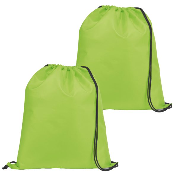 Gymtas/lunchtas/zwemtas met rijgkoord – 2x – voor kinderen – lime groen – 35 x 41 cm